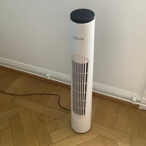 Nästan helt oanvänd pelarfläkt med 8 olika funktioner. Visar aktuell temperatur i rummet.