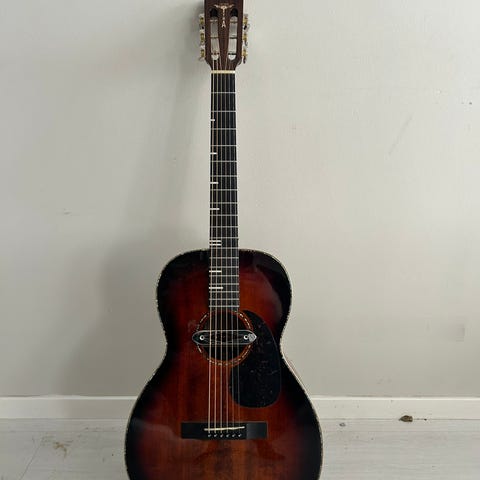 Säljer en mycket välvårdad stålsträngad akustisk gitarr, Levin modell 124 från 1960. Ovanligt fint skick, bra i hals och i princip inget band-slitage. Halsinfäste och stall stabilt. Lock i solid gran, sidor och botten i solid björk. Går även att stränga med nylonsträngar. Medföljer original bag. Kan skickas.
