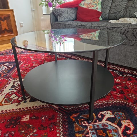 Fint soffbord som använts varsamt i ca 1 år. Har en svart löstagbar glasskiva ovanpå vilket underlättar transport.