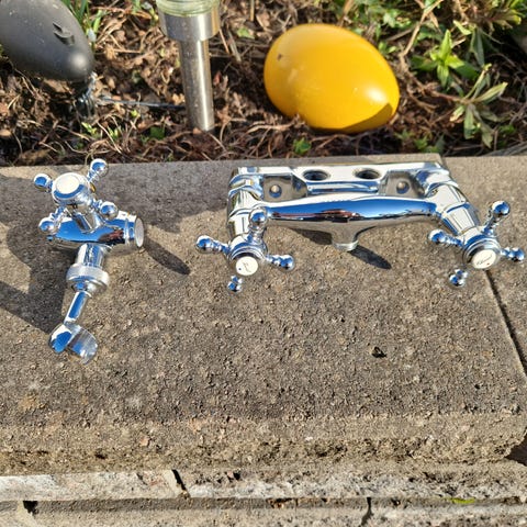Felfri begagnad badkarsblandare 160 c/c med fast utloppspip.