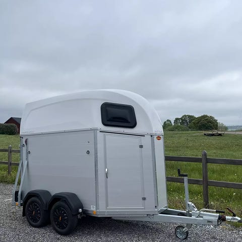 Hästtransporten är i mycket fint skick och utrustad med diagonal-lastning och frontutlastning. Ifor williams är en rejäl och stabil vagn som går mycket bra efter bilen.