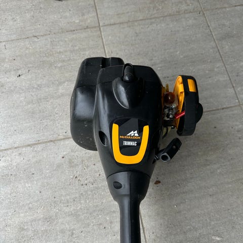 Husqvarna 122C grästrimmer för trimning av gräs och kanter i trädgård. Bensindriven modell med rak rigg och främre stödbåge/handtag för bättre kontroll vid arbete. Passar för underhåll av gräsmattor, runt buskar, staket och andra hinder där vanlig gräsklippare har svårt att komma åt.