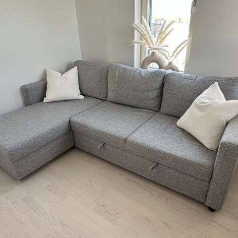 Hörnbäddsoffa med förvaring, Skiftebo mörkgrå