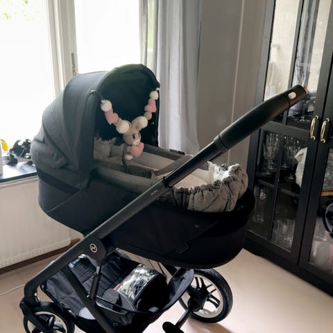 Cybex syskonvagn dubbel sittvagn i svart utförande. Vagnen är utformad för två barn och kan användas i flera olika konfigurationer med två sittdelar eller kombination av liggdel och sittdel, beroende på vilka tillbehör som används. Chassit har fyra hjul och en varukorg undertill för förvaring. Handtaget och bygeln är klädda i material med Cybex-logotyp. Passar för användning som syskon- eller tvillingvagn vid promenader och vardagskörning. Kan även användas till endast ett barn.