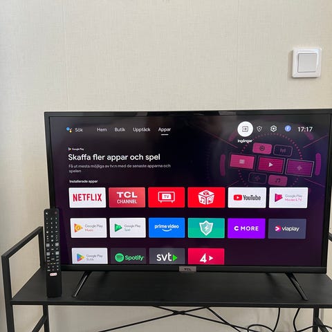 TCL tv. Platt tv med fristående fötter och medföljande fjärrkontroll, fungerar felfritt, jag har haft den i 5 år.