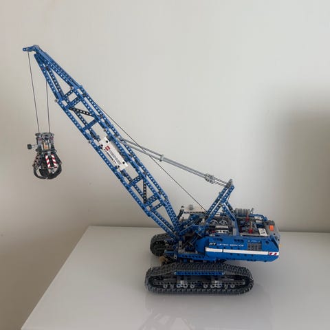 LEGO Technic mobilkran set 42082 i röd och svart färg. Byggsats med många tekniska delar som kugghjul, balkar och axlar för att bygga en detaljerad mobilkran med teleskopisk kranarm och stödben. Passar för byggintresserade och för den som vill kombinera lek och modellbygge. Rekommenderad ålder enligt förpackning är från 11 år.