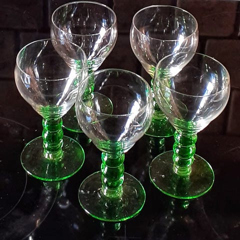 5 st. unika gröna GLAS med is-effekt- dekorativa & retro !