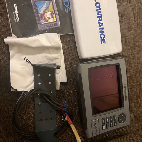 Plottern var infälld inuti i en motorbåt, solskydd ingår ej.