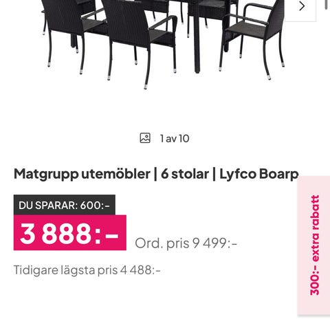 Finns även sittdynor från Rusta, som passar stolarna ingår om ni vill ha dem.