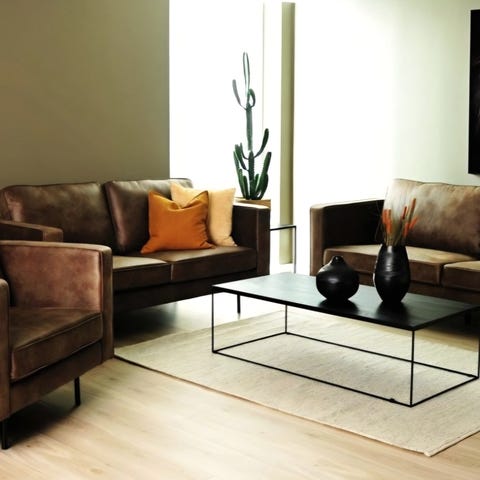 Sökord: soffa, soffgrupp, 3-sitssoffa, 2-sitssoffa, vardagsrum, brun soffa, möbler