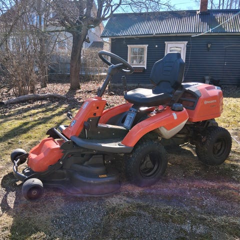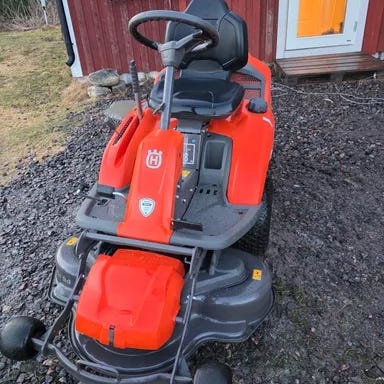 Vi säljer vår utmärkta husqvarna R 214TC hudrostat pga flytt till lägenhet. Maskinen har endast gått 160 timmar med nya knivar som endast gått en klippning! Sitter 94 cm klippbord på. Några små repor finns, den är ju dock använd! En väldigt trevlig maskin tack vare sin två cylindriga brigg&stratton motor som ger en mjuk och skön gång! Obs! Däcksparkare undanbedes!