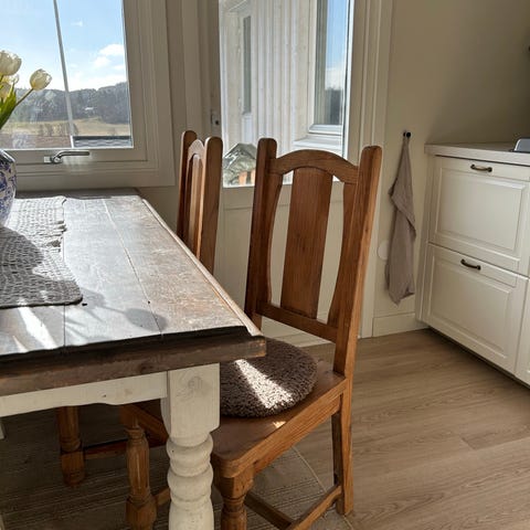 två stolor samt köksbänk längd 173 samt bredd 50 samt matta ingår.