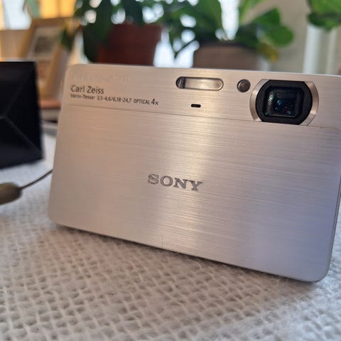 Säljer en snygg rosa Sony Cyber-shot kamera i bra skick. Perfekt för dig som vill ha den populära “vintage digicam”-looken som syns mycket på TikTok och Instagram.