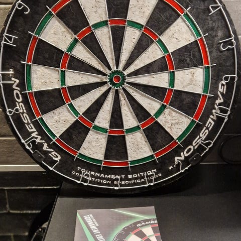 Winmau Blade 6 darttavla med skyddsring och winmau belysning. Det ingår även ett par nx90 pilar 24g och winmau pilar 24g båda är 90% tungsten. Hör av dig vid frågor eller funderingar! Kan ej skickas.