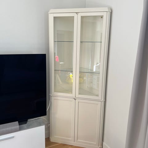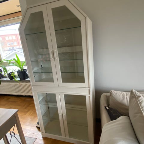 IKEA vitrinskåp vitt med glasdörrar och belysning