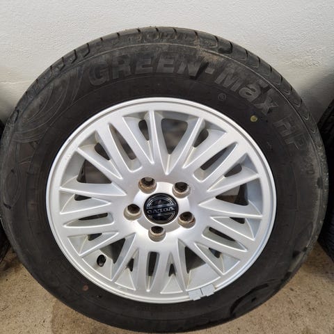 Sommardäck som suttit på en Volvo s40 årsmodell 2001. Fyra navhål. Continentaldäck med ca 5 mm mönsterdjup. 185/65-15.