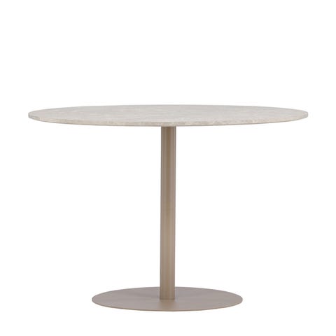 IKEA runt matbord i svart färg. Bordsskivan är rund med en diameter på 105 cm och bordet har en höjd på 75 cm. Ytan är marmormönstrad. Underredet består av tre snedställda ben i svart, vilket ger stabilitet och ett öppet utrymme för stolar runt bordet. Passar som matbord eller köksbord i mindre till medelstora rum. Nypris 2495kr