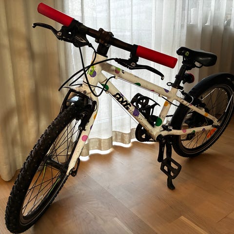 Trek barncykel med 24" hjul. Cykeln har en lila ram med vit framgaffel och raka styren. Utrustad med handbromsar fram och bak samt växlar som manövreras från styret. Passar barn som vuxit ur mindre hjulstorlekar och behöver en cykel med större hjul för vardagscykling och fritidsbruk. Cykeln är i bra skick. Cykeln har 24 växlar. Cykeln har tillhört min dotter som nu vuxit ur den. Mvh Adam