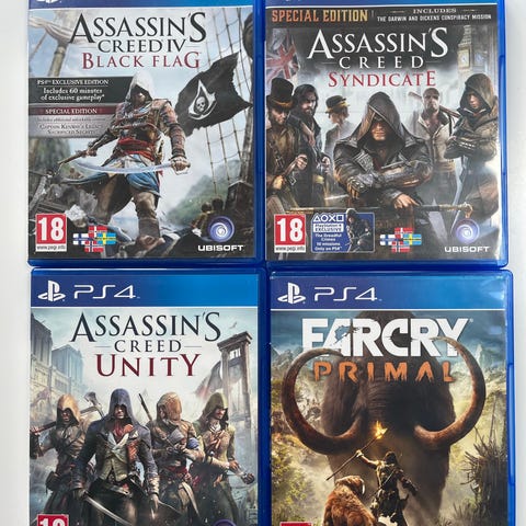 Sony Playstation 4 spelpaket med flera olika titlar. Spelen levereras i sina originalfodral för PS4. Blandade genrer, lämpliga för användning med Playstation 4-konsol. Passar för en spelare som vill utöka sin samling med flera olika spel i ett paket.