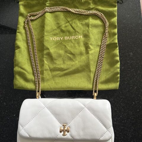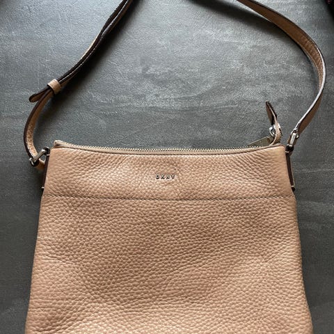 DKNY axelremsväska för kvinna i läder. Väskan har quiltad framsida med diagonalt mönster och liten DKNY-logga i metall framtill. Justerbar axelrem i läder kombinerad med kedja i metall. Väskan bärs över axeln eller crossbody och rymmer mindre personliga tillhörigheter som plånbok, mobil och nycklar. Passar som vardags- eller kvällsväska.