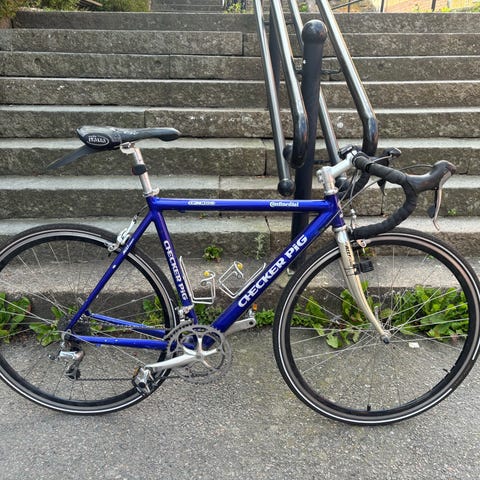 Äldre fräch racercykel med Shimano Tiagra bakväxel och Sora framväxel.2x 9 växlar.