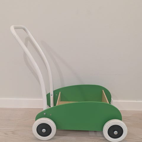 IKEA lära dig gåvagn i trä med blå sidor och naturfärgad botten. Finns i Åkersberga.