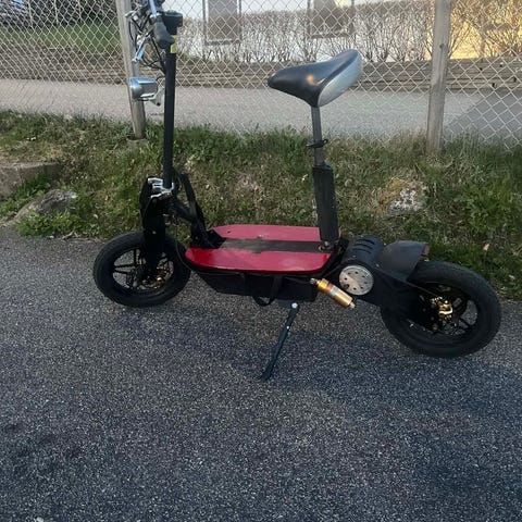 Den var köpt för 4000 på Net och net och har gått cirka 300 km. Den har inga problem förutom att framhjulet gnisslar lite när man kör under 5 km/h men sker bara ibland.