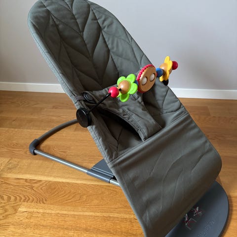 Babybjörn babysitter i mörkgrå färg. Fint skick. Avtagbar leksaksbåge.