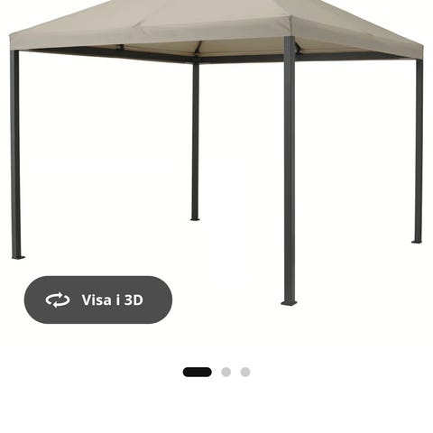 Runsven paviljong 3x3 meter med stomme i stål och dubbelt tak. Modellen är avsedd som trädgårds- eller uteplats paviljong. Levereras med stålram och takduk enligt bilderna. Storleken 3x3 m ger plats för sittgrupp eller liknande under paviljongen.