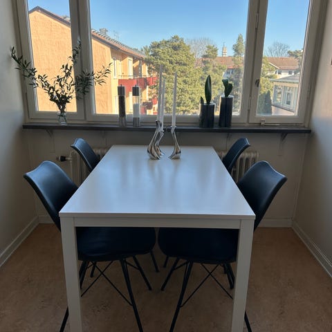 Varken färgen på bordet och modellen på stolarna säljs längre.