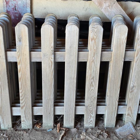 Tryckimpregnerat Trästaket i sektion. Passar som avgränsning i trädgård, runt altan eller som dekorativt staket.