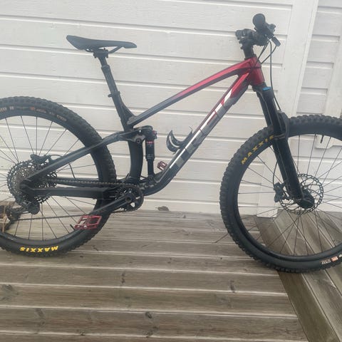 Trek slash 8 heldämpad cykel i unisexmodell med ramstorlek M /L och 29" hjul. Cykeln har fram- och bakdämpning anpassad för terräng- och enduro . Utrustad med skivbromsar, grovmönstrade däck . Den passar mej som är 173cm
