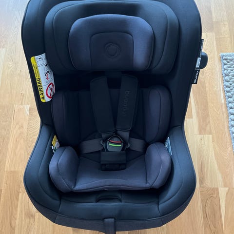 Bugaboo bilbarnstol för barn upp till cirka 18 kg. Bilbarnstolen är svart och har fempunktsbälte, justerbart huvudstöd och sidokrockskydd. Den levereras med bas, stödben, extra kuddar och tillbehör enligt bilderna. Passar montering bakåtvänt med Isofix i bil enligt tillverkarens anvisningar. Manualer och monteringsanvisningar ingår.