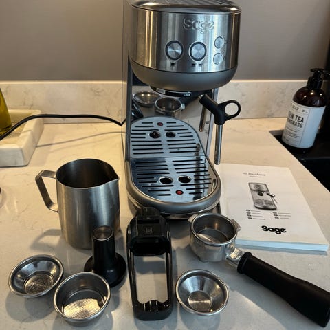 Espressomaskin Bambino från Sage. Snygg i rostfritt stål och passar i alla kök! Endast använd 2 gånger. Säljes då barista-livet inte var något för mig. Nypris 4699kr.