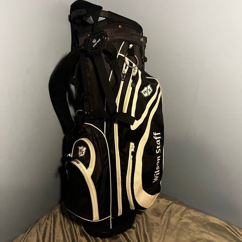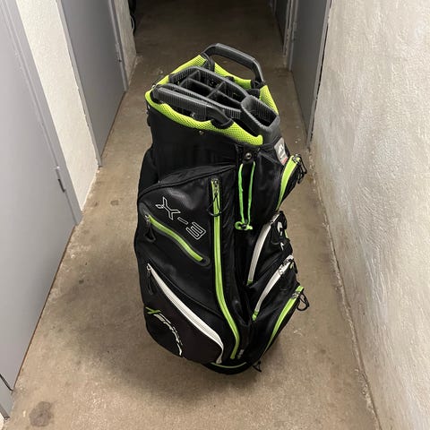 Oanvänd golfbag med många fack.
