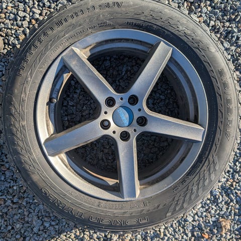 Hjul till Mercedes Cla säljes, fälgarna i bra skick däcken något slitna. Tpms ventiler.