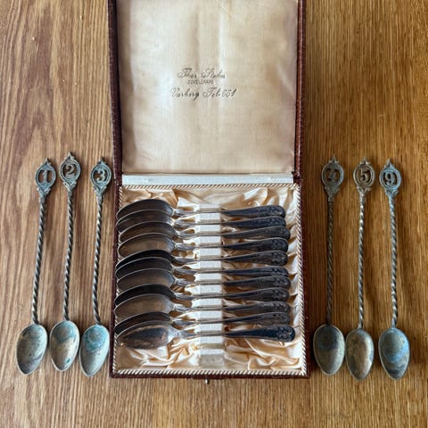 Blandade vintage plåtburkar i rektangulära former i olika färger. Motiven och texterna på burkarna varierar, bland annat dekorativa logotyper och illustrationer. Burkarna kan användas som dekoration, förvaring av småsaker eller samlarobjekt. Säljs tillsammans som ett parti.