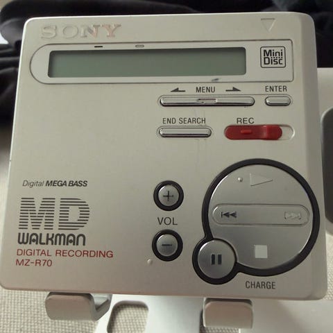 Digital röstinspelare med 16 GB lagringskapacitet i grått utförande. Enheten har tydlig display som visar inspelningstid och nivåer, samt knappar för uppspelning, stopp, meny och snabbval. Anslutning för hörlurar finns för avlyssning direkt från enheten.