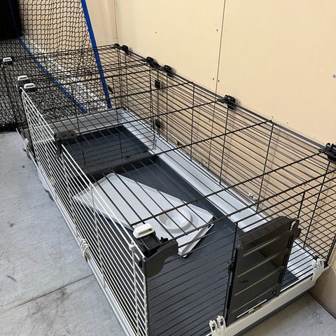 Smådjurshus bur i trä med två våningar i vitlaserat utförande. Överdel med plastbotten, trähus och ramper mellan nivåerna. Underdel med galler och utdragbar plastbricka för enklare rengöring. Gallertak och gallerfront ger god ventilation. Passar för mindre smådjur som kanin eller marsvin.