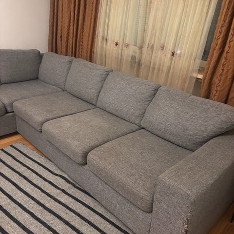 Hörnsoffa divan 3-sits med beige avtagbar klädsel. Den är i fint skick