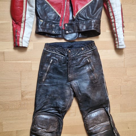 Motorcykelställ skinn röd vit