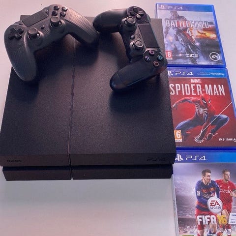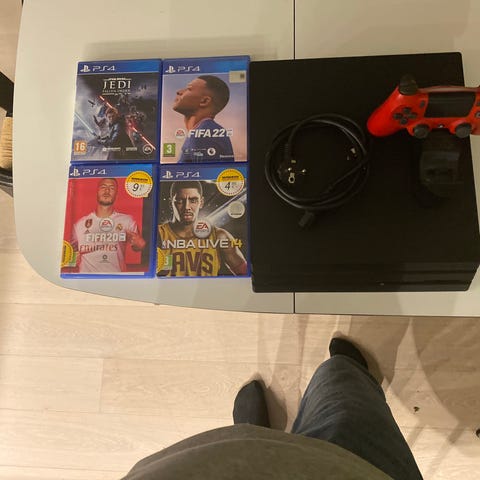 Sony PlayStation 4 pro 1TB med två trådlösa handkontroller.