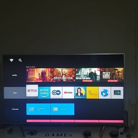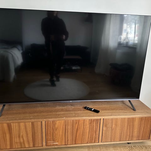 Det här är en riktigt stor TV med en bild som fyller hela rummet, perfekt om du vill ha biokänsla hemma.