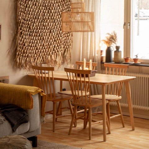 Bord ”Lisabo” från IKEA & 4 pinnstolar från Royal Design. Finns några småmärken på framförallt bordet men inga större skavanker.