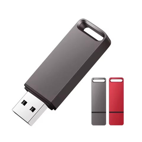 USB‑minne med angiven kapacitet 16 TB i silverfärg. Minnet har vridbart metallhölje. Två Anslutningstyp typer. Lämpligt för lagring och överföring av filer mellan kompatibla enheter som datorer och andra enheter med USB‑port.