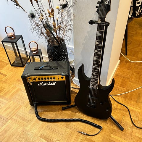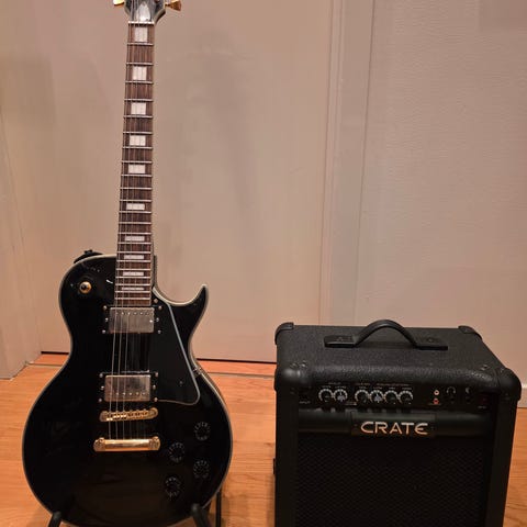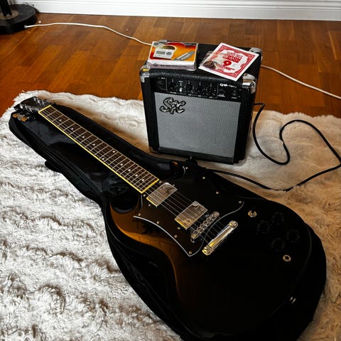 Elgitarr svart med förstärkare