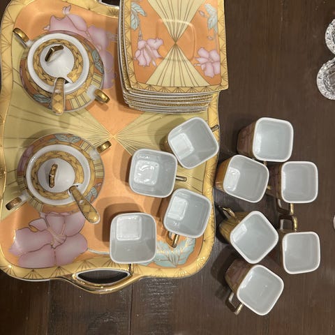 Okänt märke bägarglas med fot i klart glas med graverat blommönster runt kupan. Setet består av sex glas i liknande storlek och form, lämpliga för servering av exempelvis dessert, likör eller andra drycker. Glasen har kort fot och rund kupa med dekorativt mönster som ger ett enhetligt uttryck på bordet.