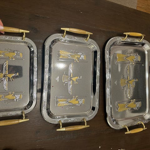 Serveringsbricka rektangulär metall guld med handtag