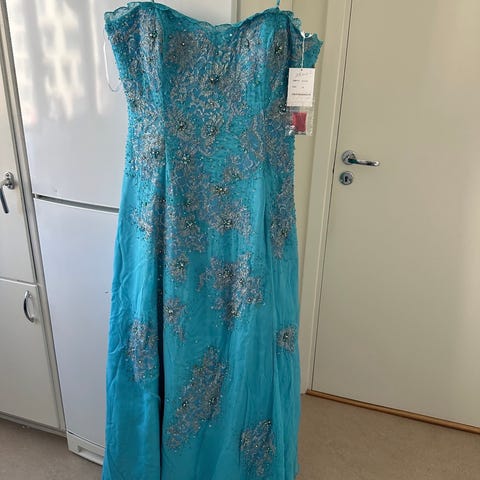 Festklänning lång blå spets dam storlek L