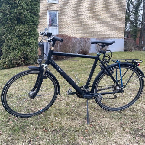 Denna otroliga Crescent hybridcykel ska nu säljas. Skicket är fint och inget att anmärka på. Utrustad med kedjeskydd och belysning fram och bak. Lämplig för pendling och vardagscykling på blandat underlag, 16 växlar.